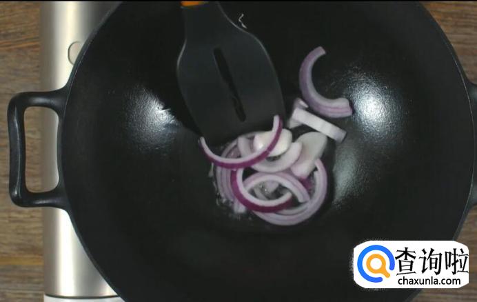 然后我们另取一口锅,倒一些油将洋葱稍微煸炒一下。