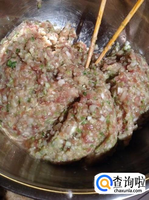 在混合的时候可以加入几个鸡蛋,让饺子馅更美味,再加入一些调味料,比如盐、味精等,带上手套将它们混合均匀。