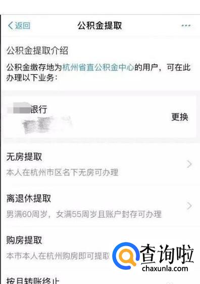 下面进入到提取界面,包括无房提取、离退休提取、购房提取,也就是说,只要不是处于归还公积金贷款的用户都能够提取公积金。