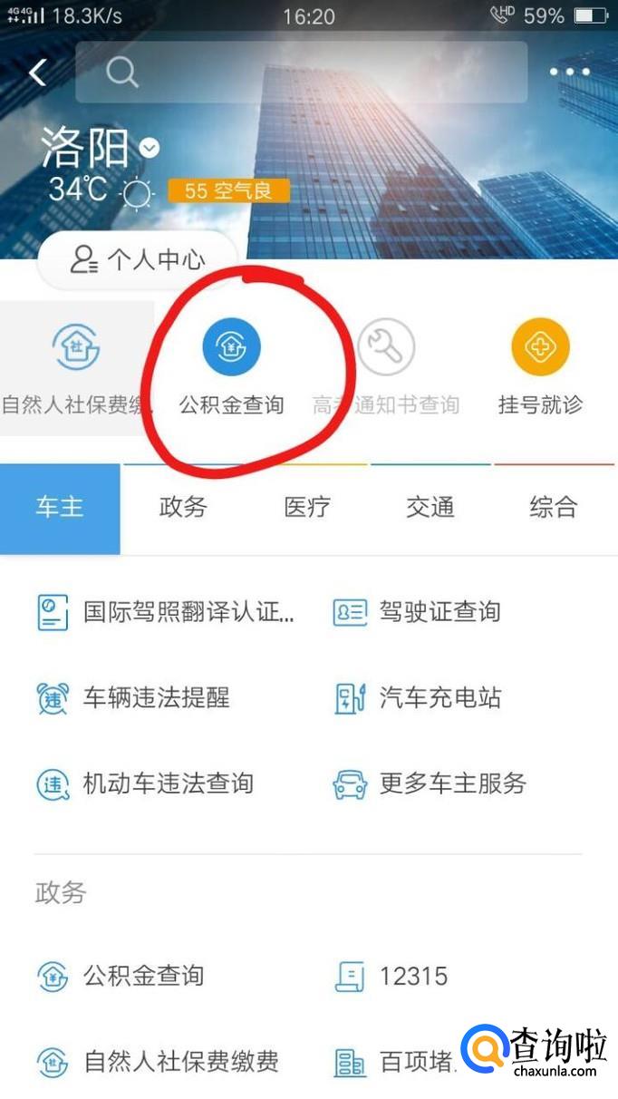 点开后,找到公积金查询。