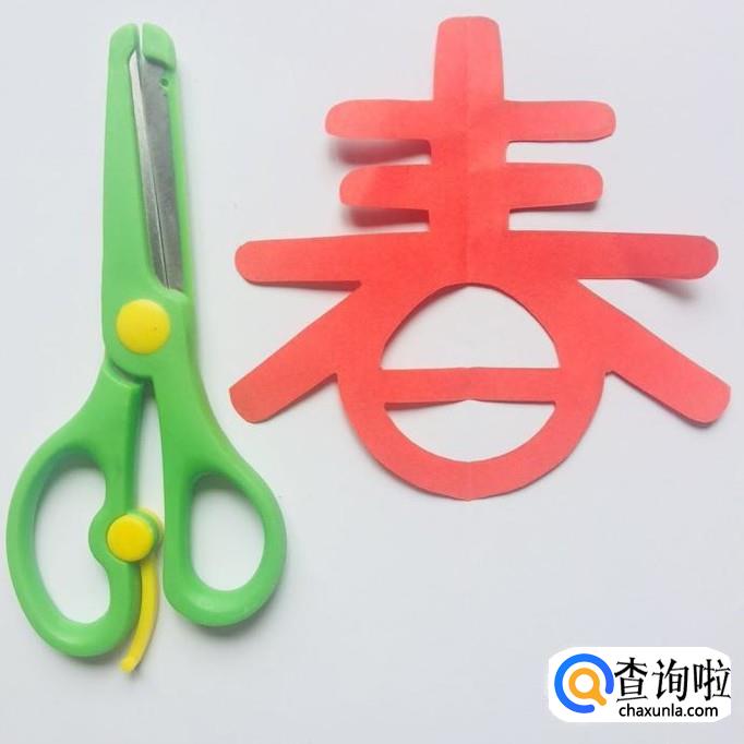 然后用剪刀剪出春字的下半部分,如下图所示。