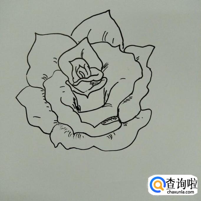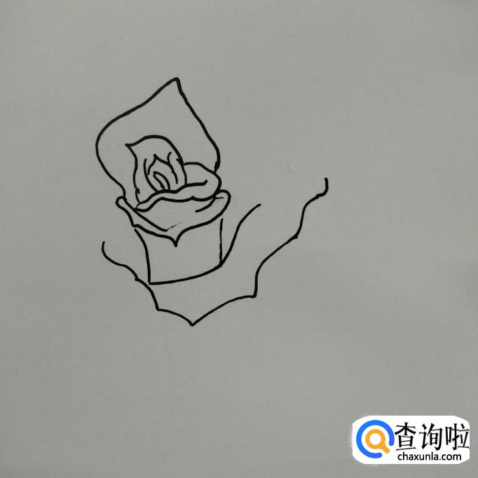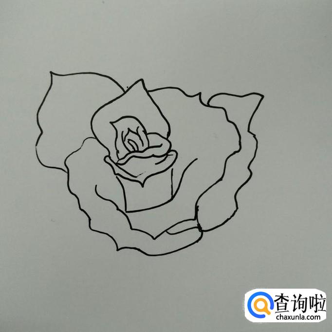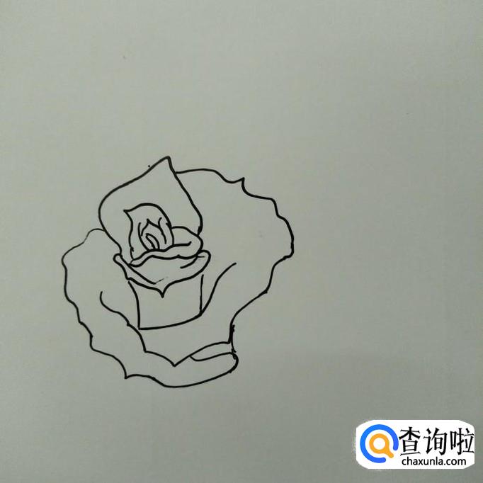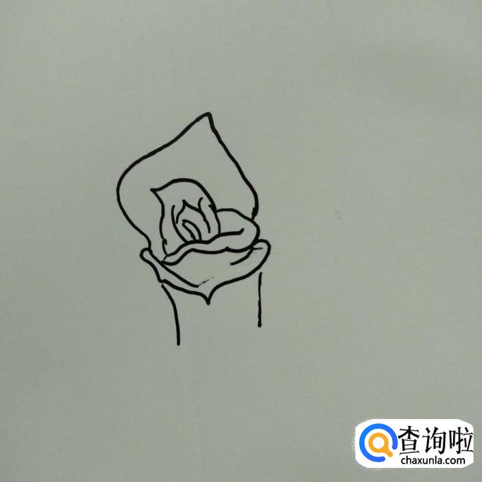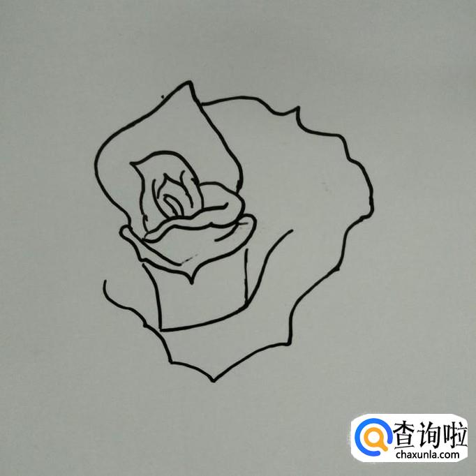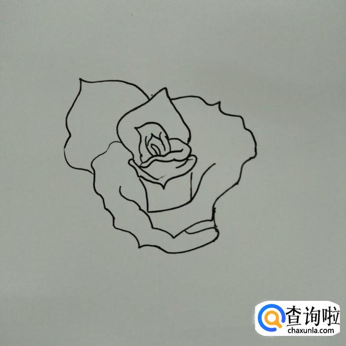 在左边,右边花瓣的起口处画出另一片较为尖的花瓣。