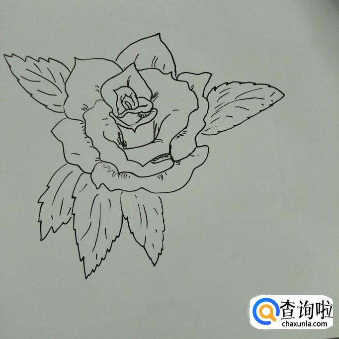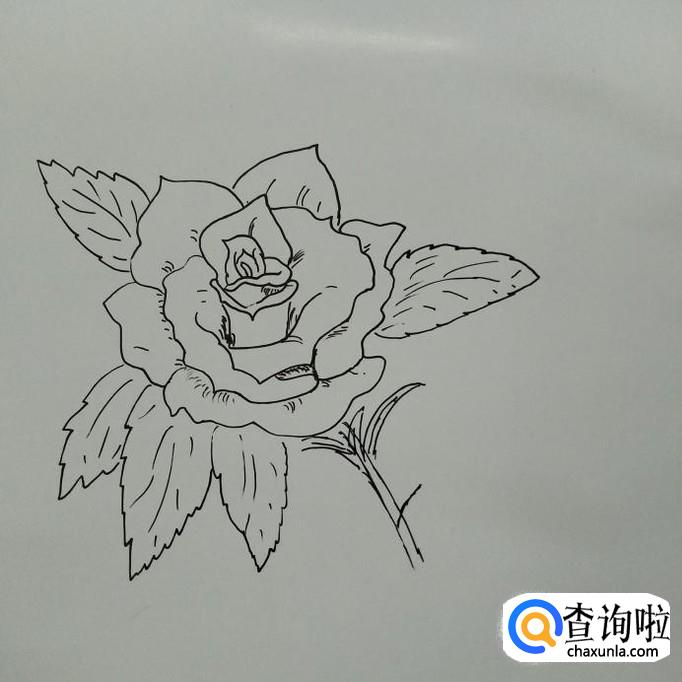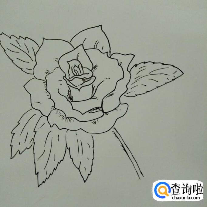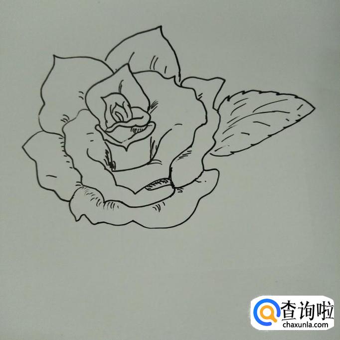 最后画一片最左边的叶子,然后在花瓣的内部画一些小斜线。