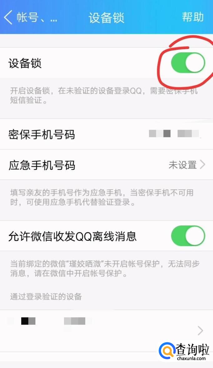 如下图所示,就已经显示关闭了QQ的设备锁啦!