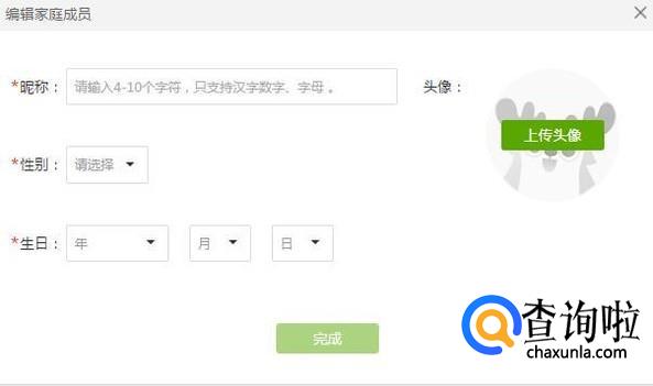 然后输入你的家庭成员的信息并点击完成,如下图所示。
