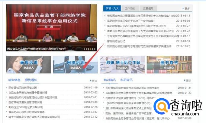 找到网站上面的“网络培训”点击进入。