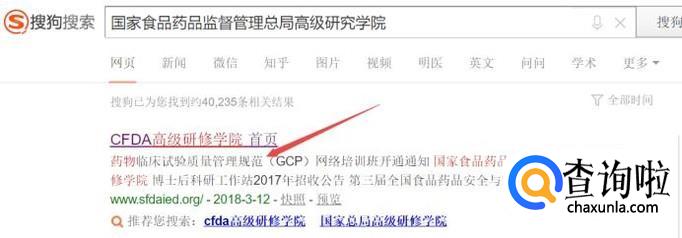 需要我们在网络上报名,在浏览器中搜索“国家食品药品监督管理总局高级研究学院”,点击进入官网站,如下图所示。