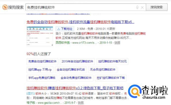 我们打开浏览器搜索全自动挂机赚钱软件,我们可以看到很多网站都有。但是点进去都是一些游戏或者网页广告,上面会写着下载安装好,挂机一小时多少多少元这种肯定是假的大家不要相信。如果你下载完,就会让你去拉够一定数量的人就才可以开始挂机了。这种是需要你发广告朋友圈帮他们他拉人,这是在帮他们多增加用户量。还有一种是以软件的形式,上面会写明你需要下载安装多少个软件,然后分享到群或者朋友圈拉到多少人才可以挂机了,这些绝对是假的!不管是网站还是软件只要让你要下载分享到群然后拉人的这种都是假的,这种只不过是利用挂机的幌子来诱导你安装他的软件而已,你不会得到任何好处。