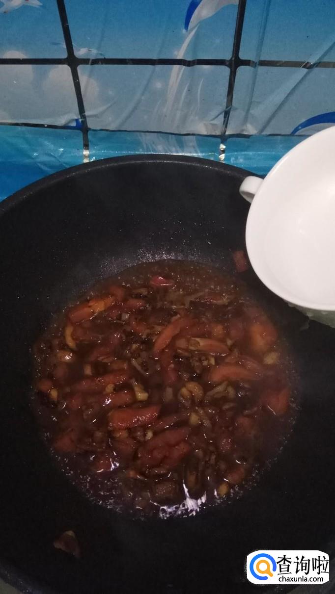 加入一小碗清水,大火将水烧开,然后取适量水淀粉勾芡,这样炸出来的酱,是微稠状,拌面更香。