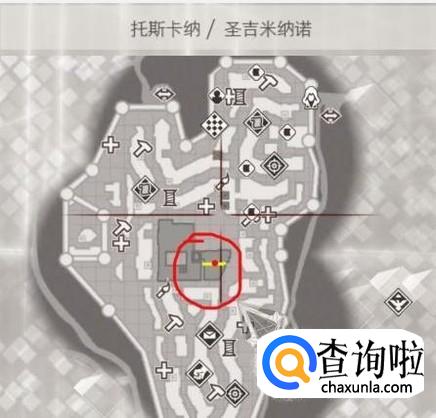 托斯卡纳也只有一处,在城中心的小巷子里,如图所示的地方,红圈同样标注机关