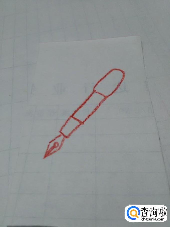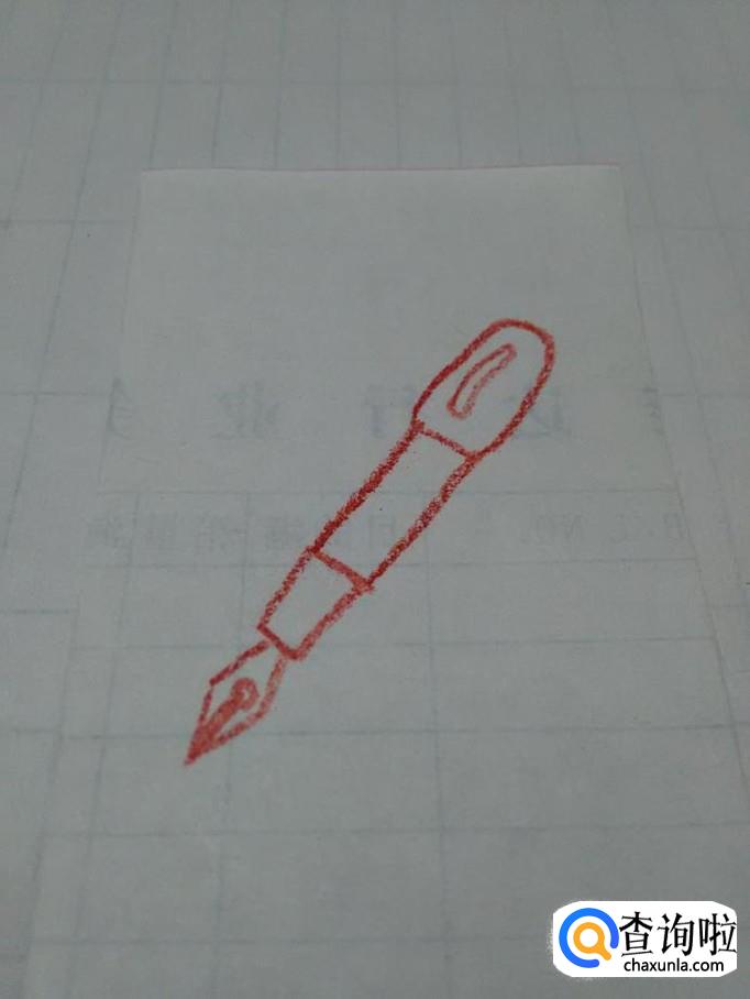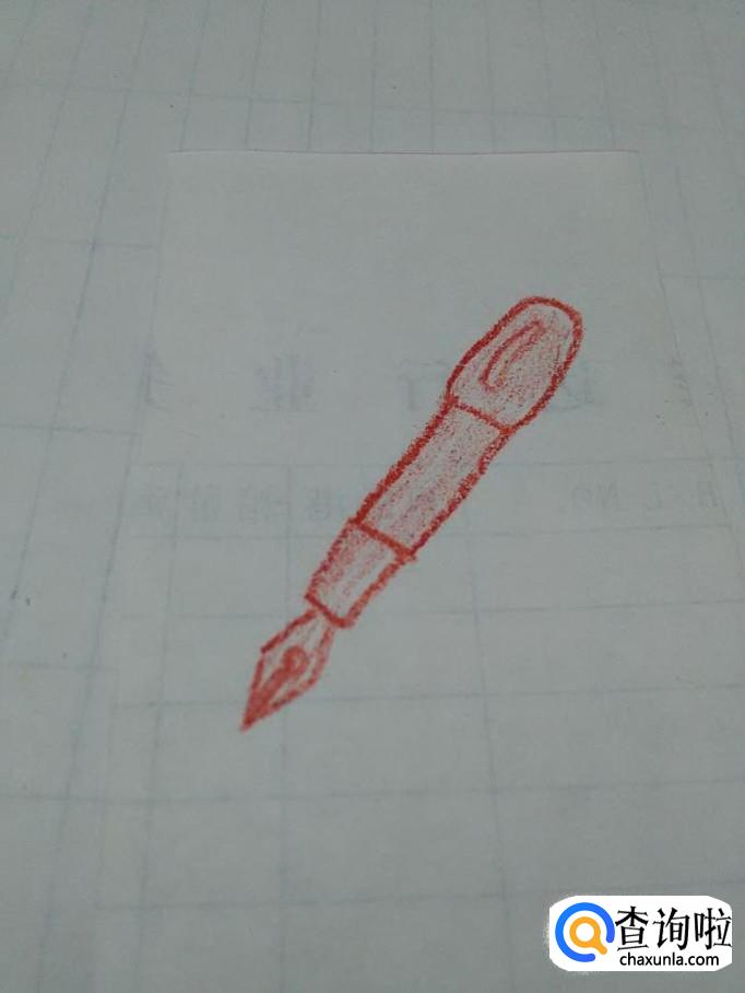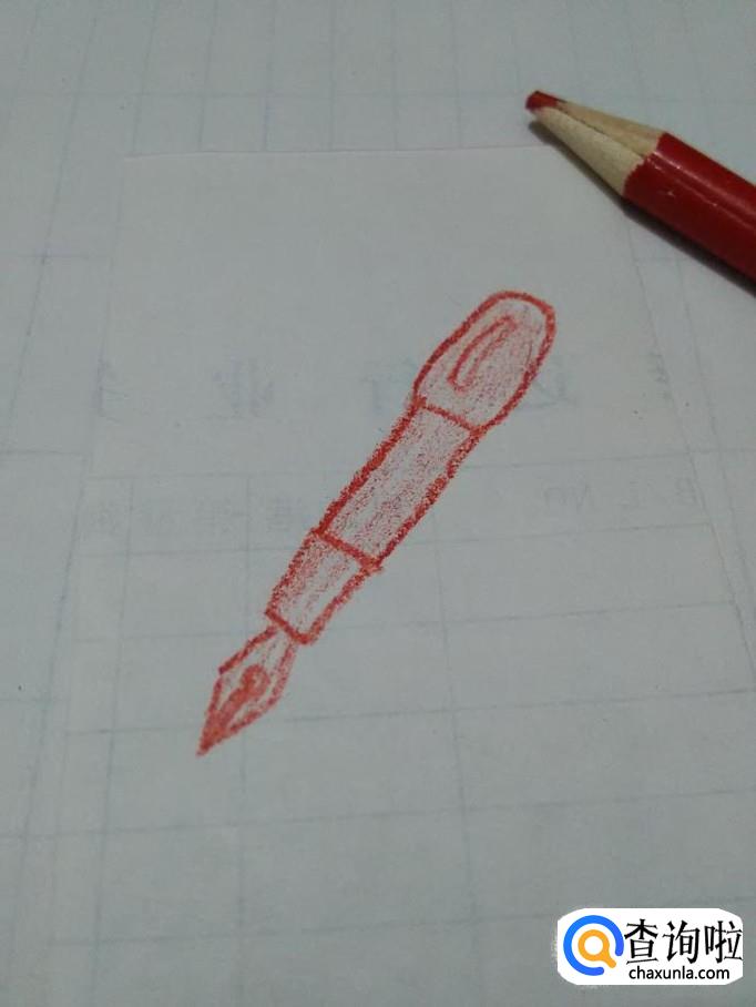 最后用彩笔将钢笔涂上颜色,钢笔就画完了。