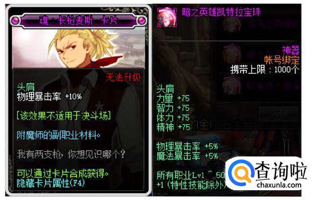 普通玩家附魔建议选择【魂:长枪麦斯】,可以增加10%的物理攻击率;毕业玩家附魔选择春节附魔宝珠【暗之英雄凯特拉】,增加75点的四维,1到50级的技能等级加1级,还有5%的双暴击率。