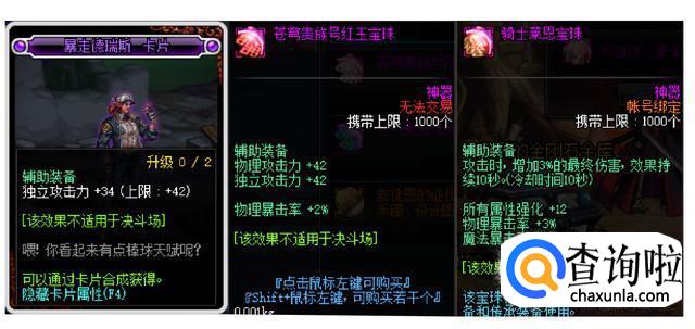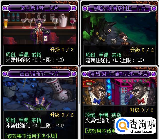 普通玩家建议选择13点属强系列卡片,目前主要推荐走光或者暗属强,如果不想花钱,可以选择活动赠送的12点属强系列卡片。普通玩家建议使用810个魔能石兑换【苍穹贵族号红玉宝珠】增加42点独立和2%的暴击率,或者是拍卖场购买【暴走德瑞斯】,不到10万一张,升满级同样是42点的独立攻击力;毕业附魔则是春节附魔宝珠,3%的最终伤害,12点全属性强化和3%的暴击率。