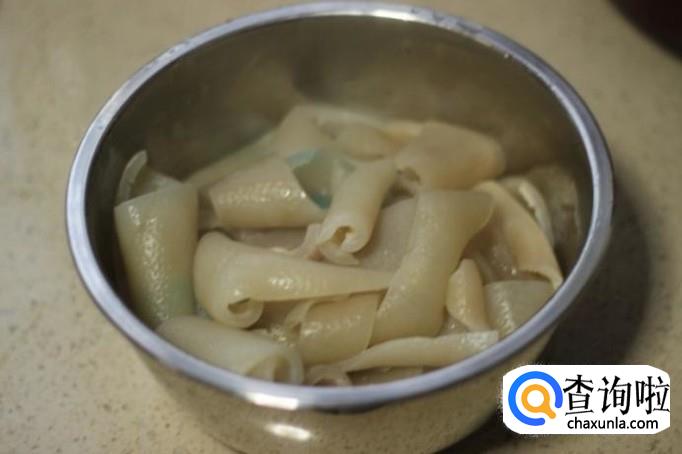首先我们将猪皮清洗干净,然后放入锅中煮熟。