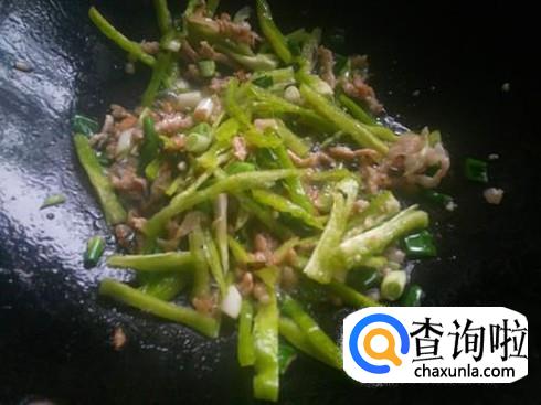 再放入辣椒丝继续煸炒出辣味。