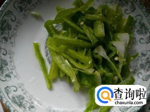 青辣椒切成丝儿。