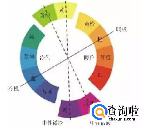 如下图所示,暖色调一般包括黄色,橙色,红色。冷色调一般包括紫色,蓝色,绿色介于他们中间的颜色,我们一般称为中性。