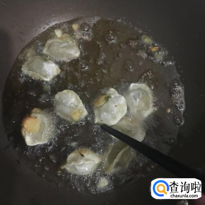 然后往锅中放入适量的食用油,待油起一层油泡,把饺子丢进去煎至两面金黄。
