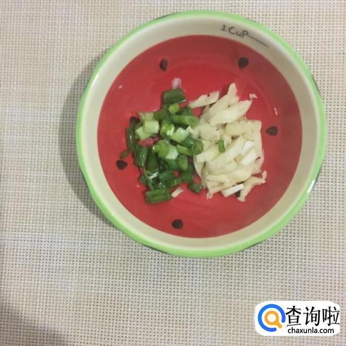 接着把蒜头切成蒜蓉,香葱切成葱花。