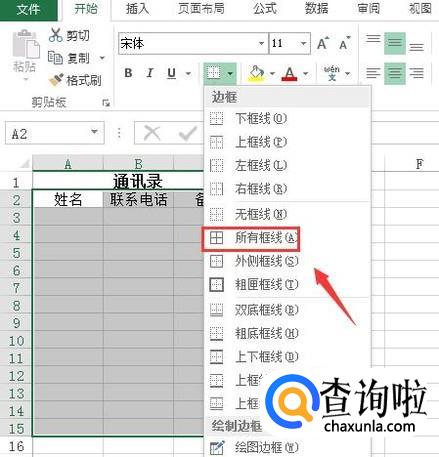 点击所有边线选项,我们的通讯录就制作好了,如图所示: