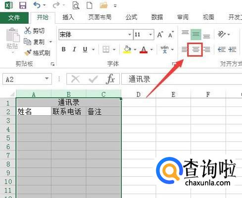 点击合并居中之后,表头就制作好了,然后选择项目内容再在上面找到居中选项,如图所示: