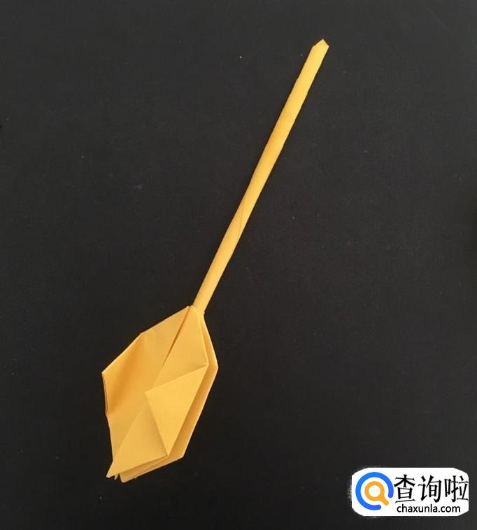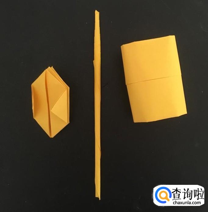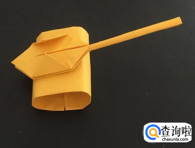 再取出一张纸,沿着其中一个角卷起来,并用胶水固定住,这个是坦克的炮筒,这样坦克的三个部件就做好了。
