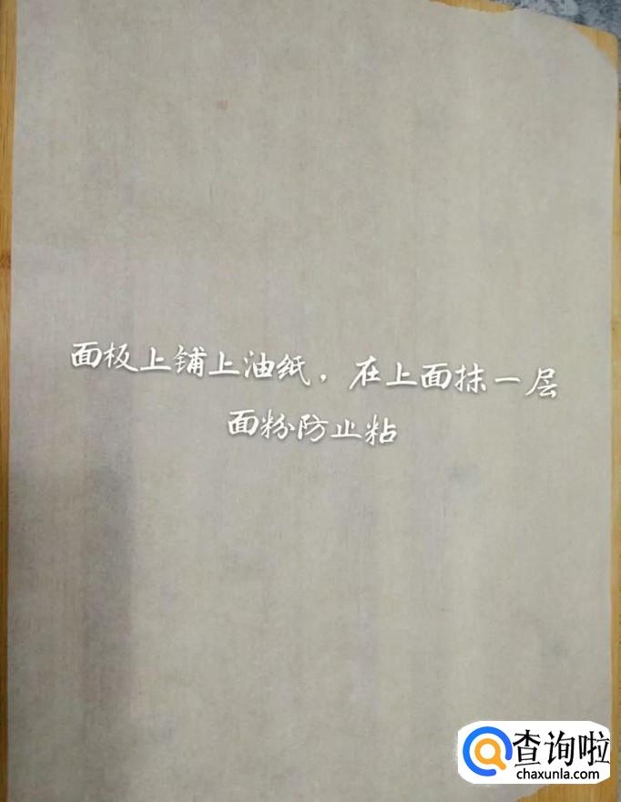 接着在面板上铺上一层油纸并在油纸上涂抹上一层面粉,如下图所示。