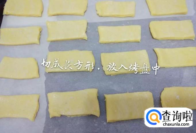接着切成长方形,放入烤盘中,如下图所示。