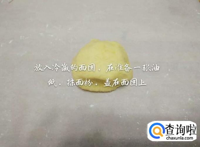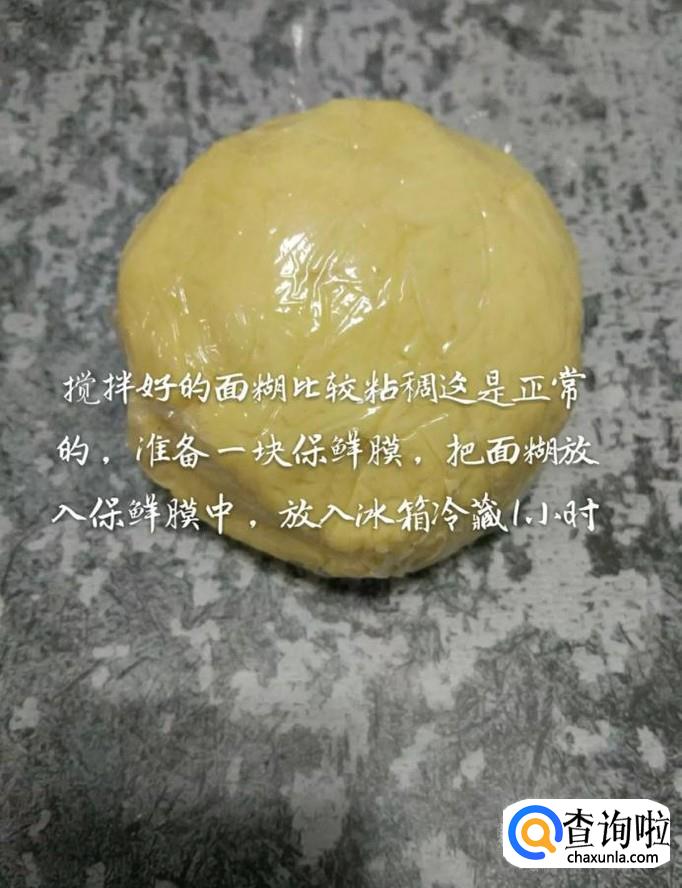 然后把所有食材揉成光滑的面团,包上一层保鲜膜放入冰箱冷藏一个小时,如下图所示。