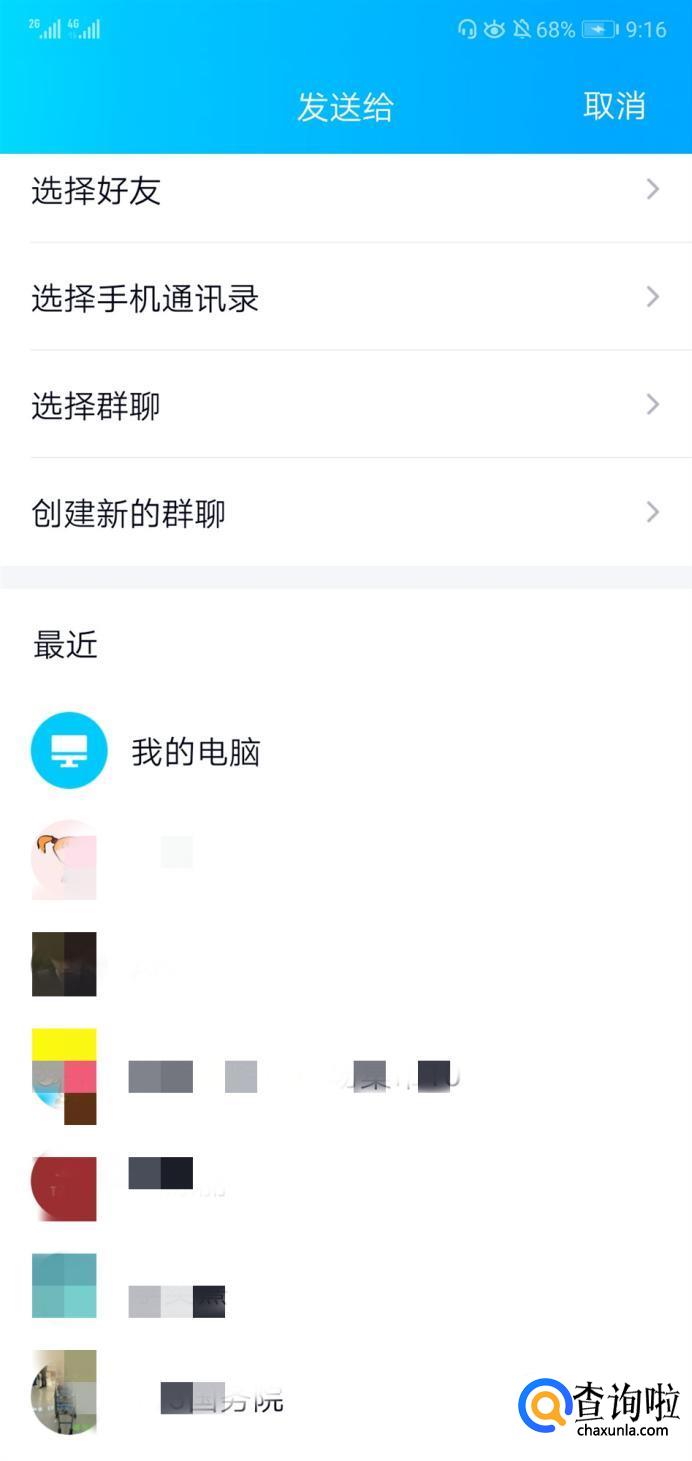 选择要发送的好友。