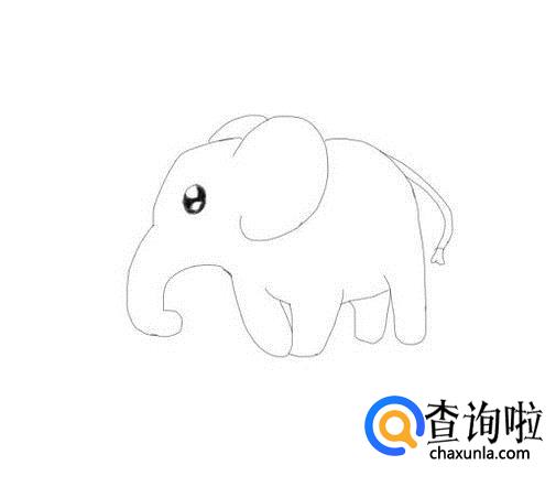 最后在身体的后面再画出大象的尾巴,这样简笔画大象我们就画好了,如图所示: