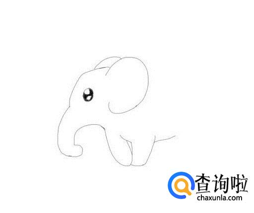 再在头部上画出大象的两只耳朵,然后再画出大象的眼睛,如图所示: