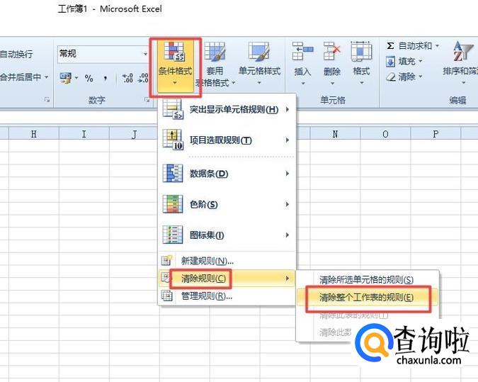 想要解决这个问题其实很简单,我们点击条件格式,然后我们点击清除规则,之后我们点击清除整个工作表的规则;