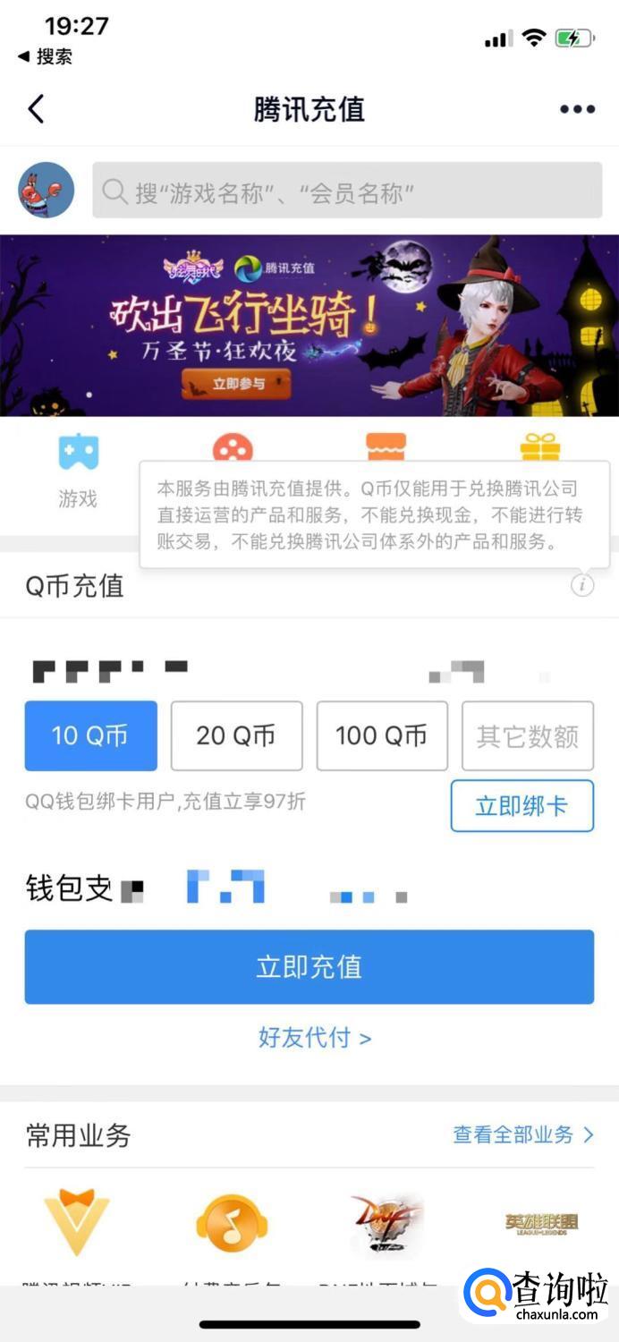 首先我们进入充值的页面充上Q币。