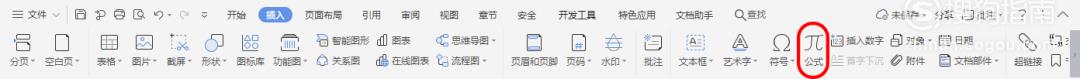 在插入面板找到“公式”并点击。