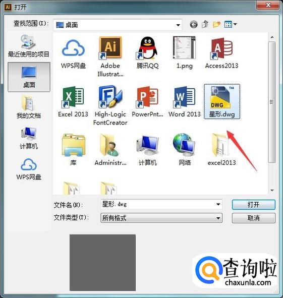 点击打开选项在弹出的对话框内找到我们的dwg格式的文件,如图所示: