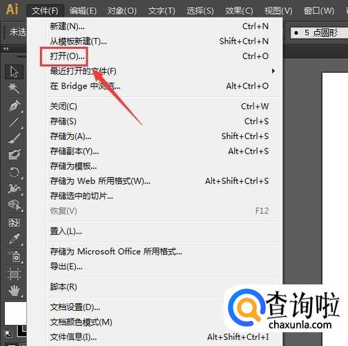 打开AI之后,找到文件菜单点击文件在其内找到打开选项,如图所示:
