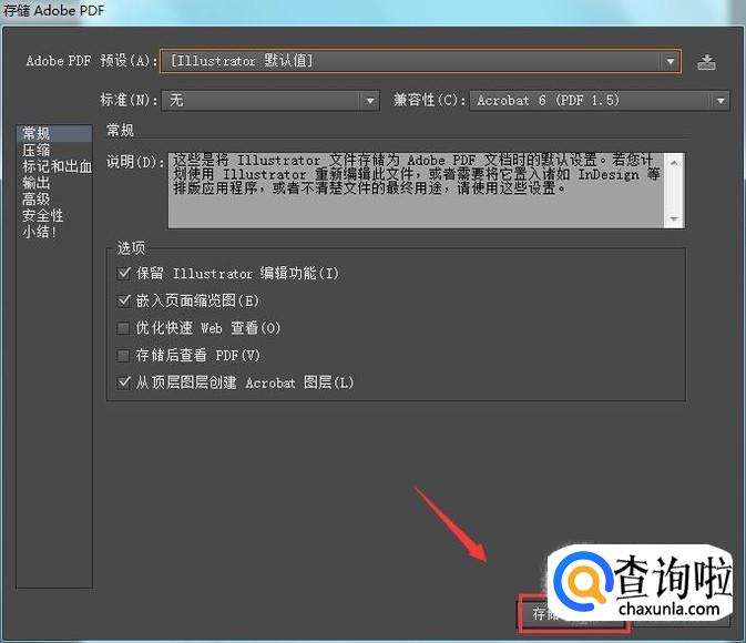点击存储为选项,在弹出的对话框内设置保存格式为PDF,如图所示: