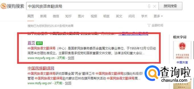 打开浏览器,搜索关键词“中国民族语言翻译局”。