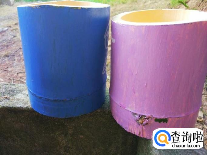 接下来就是给花盆上色了,选择自己喜欢的颜色作为背景颜色,涂2-3次。最好选择颜色比较深的颜料,这样更容易遮住竹筒本来的颜色。