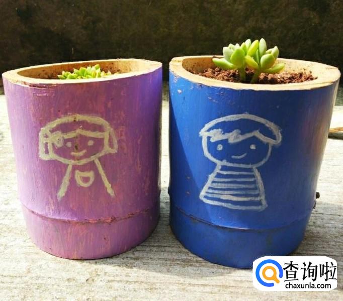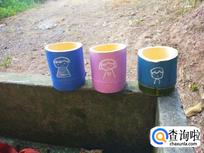 最后我们把做好的竹筒晾干,我们的花盆就做好了,大家可以动动手做成情侣款的。