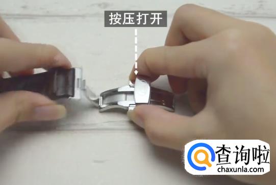 先把表扣打开,往下按压就可以打开。