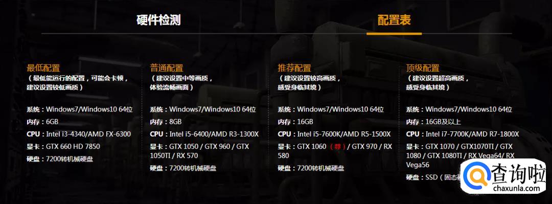 (最低能运行的配置,可能会卡顿,