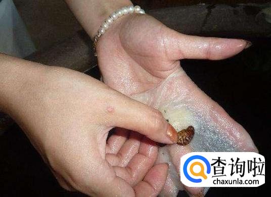 然后我们先用手把蚕茧开一个口,然后把蚕从蚕茧中抠出来,小心不要弄到蚕,要不然会把蚕丝弄脏掉。