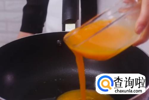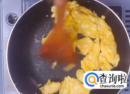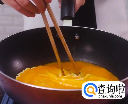 热锅热油,将鸡蛋液倒入锅中,等鸡蛋熟后,将其分成小块然后盛出。