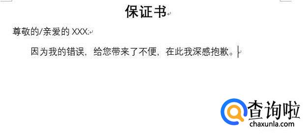 正文开头顶格写,写要看这份保证书的人的称呼。可用敬称,敬称后加上看保证书人的称呼,如”尊敬的老师“,称呼完后后面的标点符号是冒号。