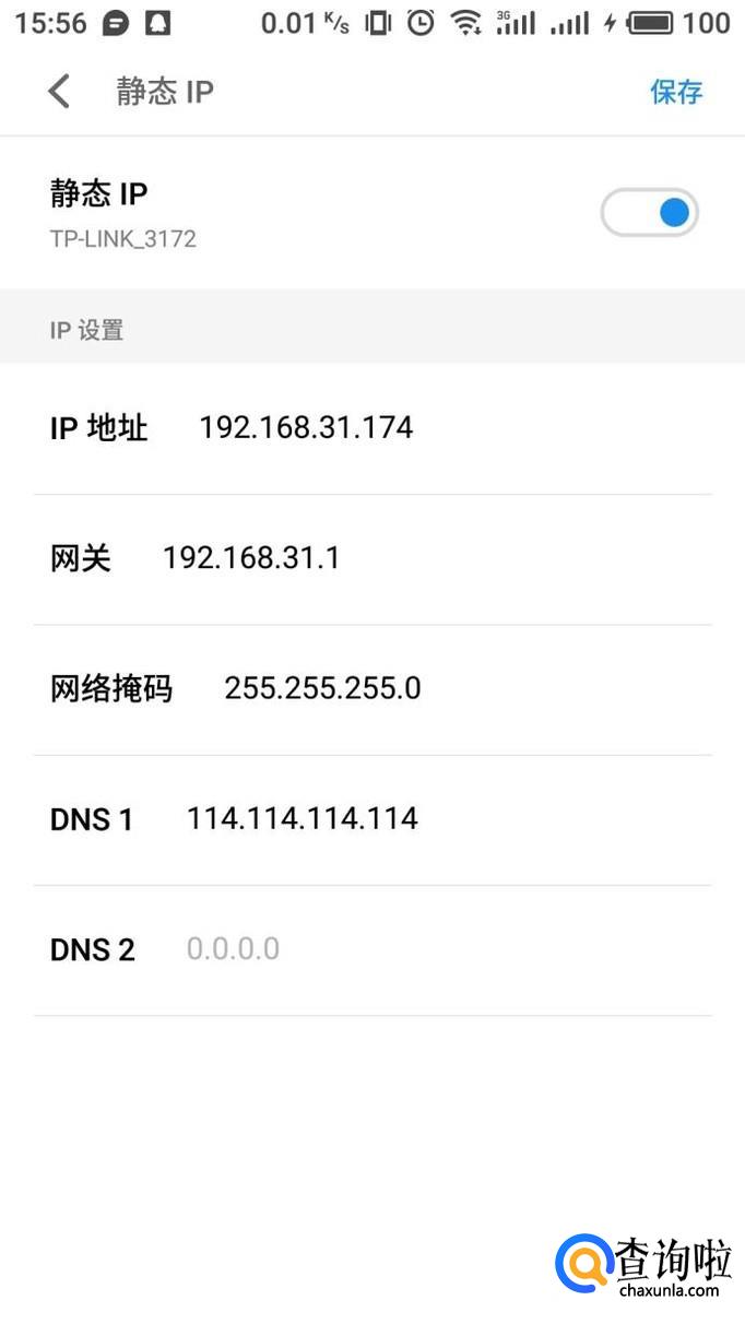 进入WIFI静态IP界面,将上方的静态IP滑块开启。