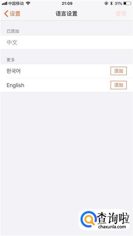 接着选择我们要添加的语言右侧的添加,如下图所示。