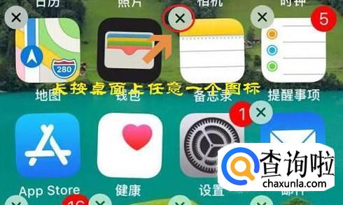 想要建立分组,我们首先长按桌面上的任意一个应用图标,然后会看到图标变成晃动形式,而且应用的左上角会有一个“x”符号,如下图...
