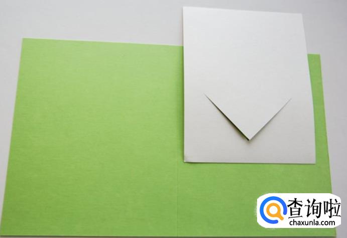 接着,我们把裁剪好的白色卡纸粘贴到绿色的贺卡主体上面。